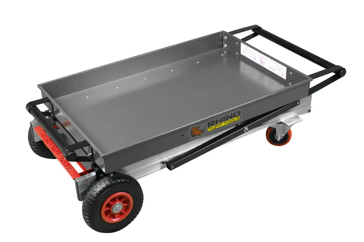 Other folding carts are unusable and cumbersome in the collapsed position. Often, the user has to carry these other carts when collapsed. In contrast, Rhino Tuff Tools’ Collapsible Utility Cart excels as both a small hand truck in the collapsed position, and thanks to double-locking casters, provides excellent stability when used as a work platform.