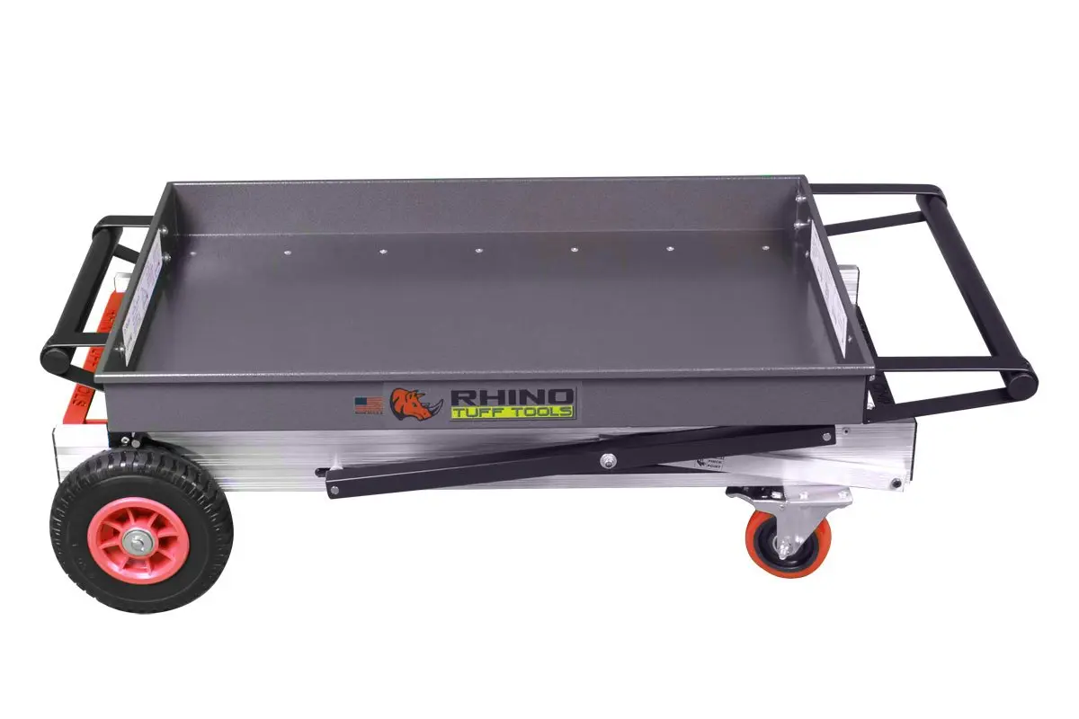 Our metal cart has a smooth operating design for extending and collapsing without any removable parts. It is extremely stable over rough terrain and as a work platform. The 8″ flat-free wheels assure you will never have a low or flat tire to slow down your work day.